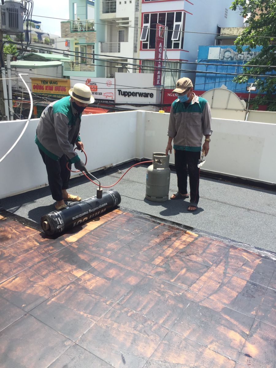 Chống thấm sân thượng bằng màng chống thấm nguội hoặc khò nóng.
